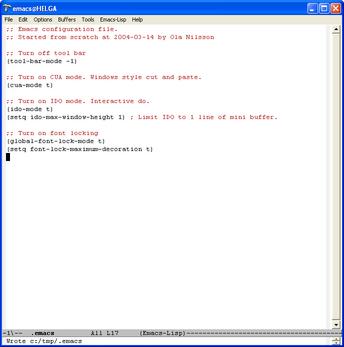 Type "C-x s" to save the configuration file. Then restart you Emacs ("C-x C-c" to exit).Starting up you should see this:
